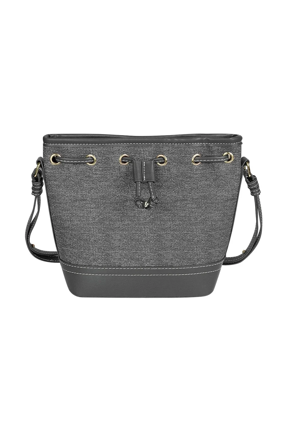 Denim schoudertas met trekkoord